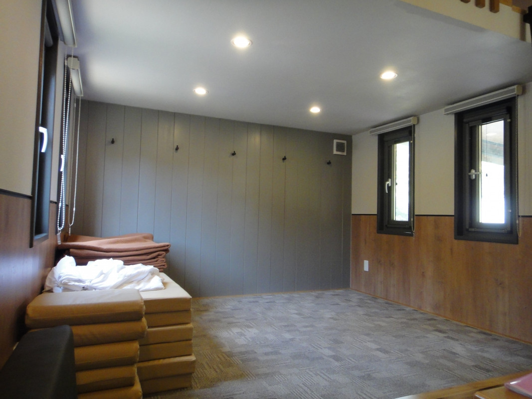 問題は寝る場所で定員いっぱい6人で利用したが、通常の寝処は3人、ソファーをベットにして1人、デスクを片付けてもう1人、残りの一人はロフトで寝ることになるが、上下幅が狭く圧迫感があり、梯子での昇り降りに難儀するので、荷物置きにしか使用できず、無理やりキッチン前にスペースを確保することになった。あとWiFiがつながらないのが難点か。