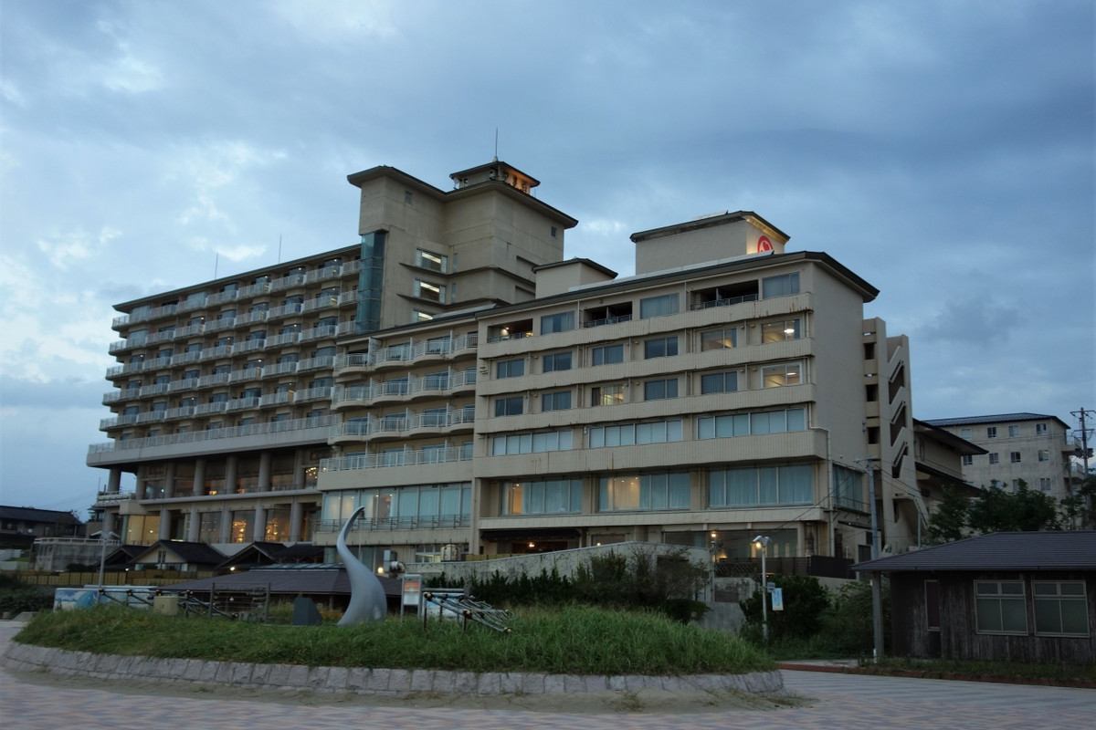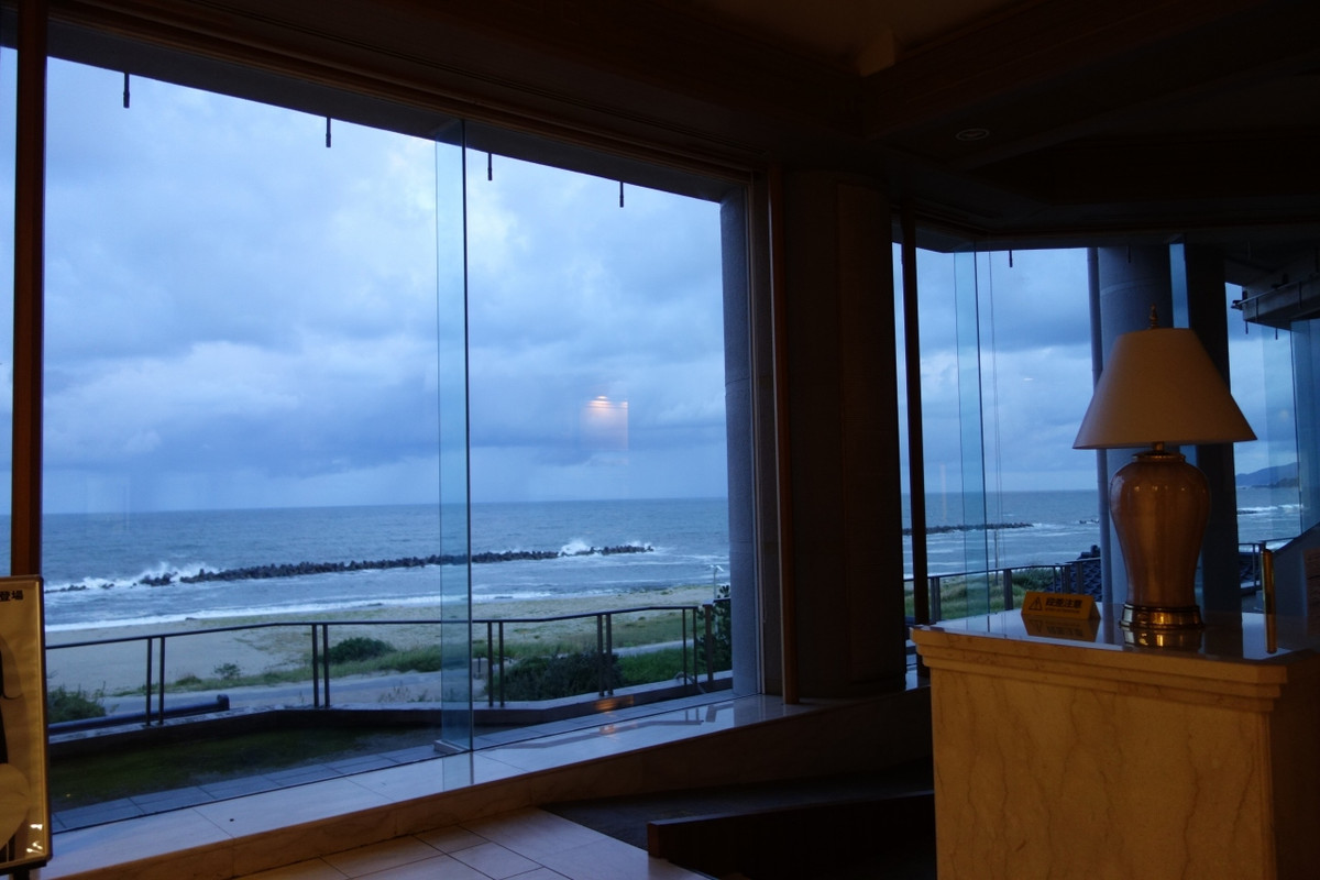 バーゲンセールプラン、誕生日割引で格安で泊まりました。ツインの部屋は、カーテンが無く、板戸を閉めると暗かったので、シングルに変えて貰いました。眺めは街側でしたが、展望エレベーター、ロビーと隣のテラス、レストランからも海が見えるので、平気でした。大浴場併設の露天風呂と、もう1ヶ所露天風呂がありますが、砂浜と塀で、海は遠くに見えます。夕・朝食のバイキングは、品数、味も大満足でした。また泊まりたいです。