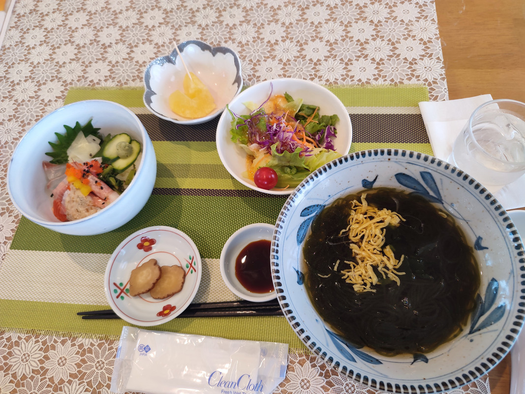 内容はミニ海鮮丼とわかめそば。