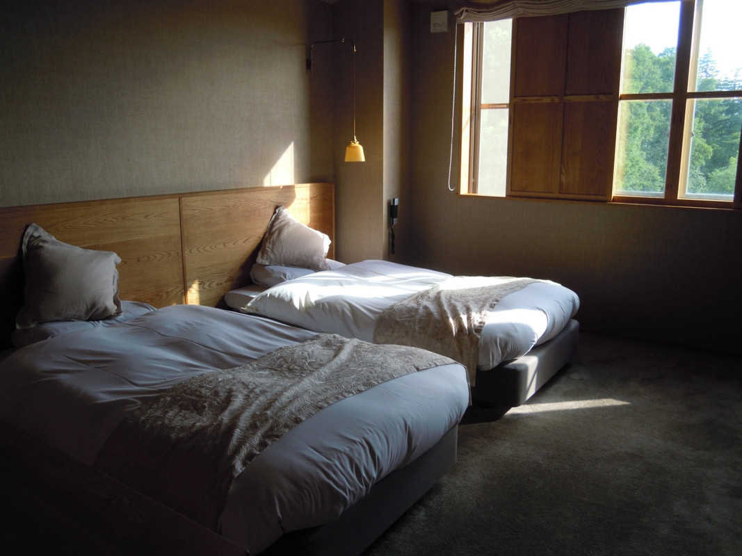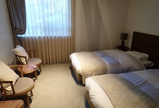 部屋は和室が多いですが、私共はツインタイプ、洗面がオープンで、木のぬくもりを感じる旭川家具が使用されてました。