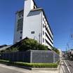 施設の正面 (日没後)