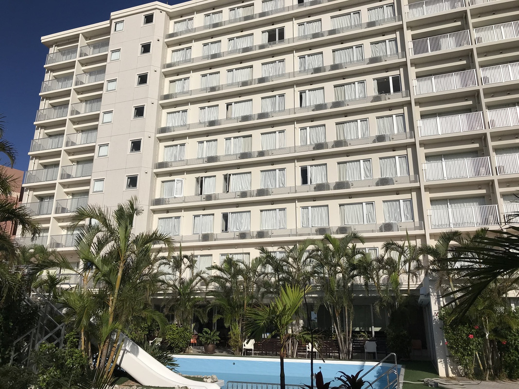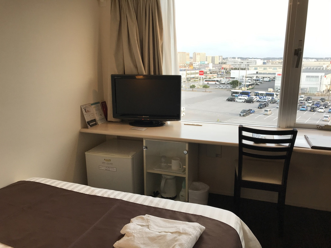 部屋はビジネスホテルといった感じ。海側の部屋であれば瀬長島などが見えるのだが、街側の部屋は前述の通り殺風景。開発中の工業団地にいる感じがする。とは言えリゾート感は無いが悪いわけではない。絨毯では無くクッションフロアなので、裸足でも気持ちが良い。