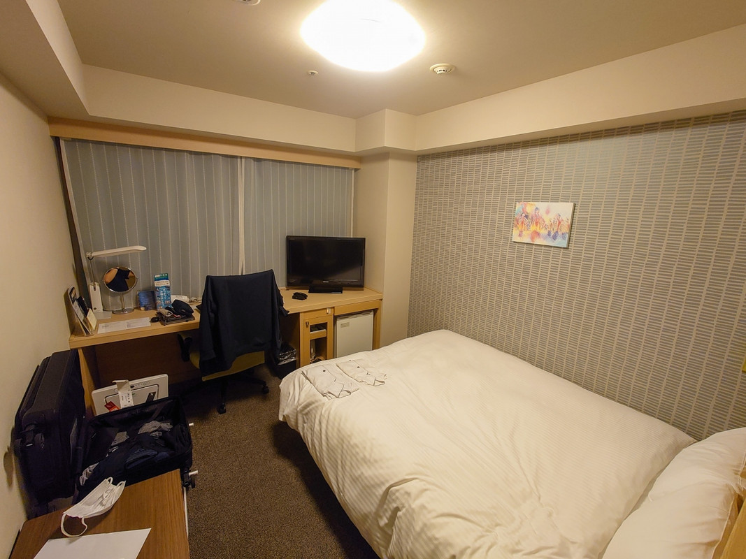ゆいレール牧志駅から徒歩2分。駅からホテルまで、通路は屋根があり、雨が降っても濡れずに行けます。宿泊プランはホテルお任せプラン。この日はダブルのお部屋。部屋は清潔感もあり、ゆったりしていてくつろげます。このホテル、今回は素泊まりですが、朝食が有名です。仕事で来たとき以外は朝食付プランがオススメです。朝から泡盛、オリオンビールが飲めます(笑)