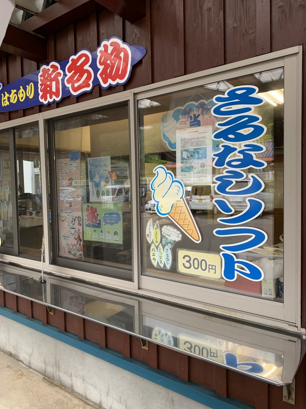 ハタハタ館は、秋田白神駅の目の前にある日帰り温泉もできる宿泊施設だが、道の駅がわりに立ち寄った。隣は、産地直売所で海産物や山菜が売られていた。