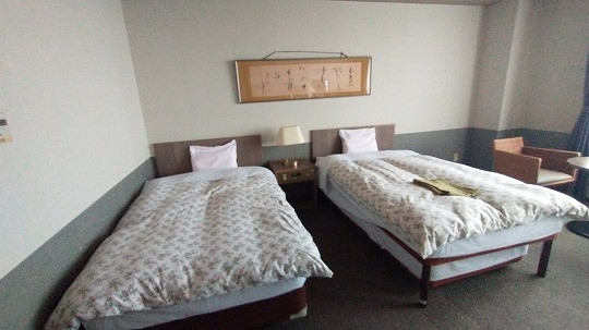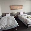 客室は広いツインの洋室中心。食事処は夜は2階の宴会場、昼は1回の解放されたレストランになります。客室はかなり広く、海に面しているので眺望も大変良いです。