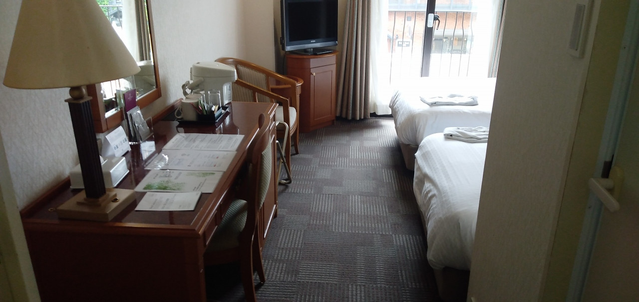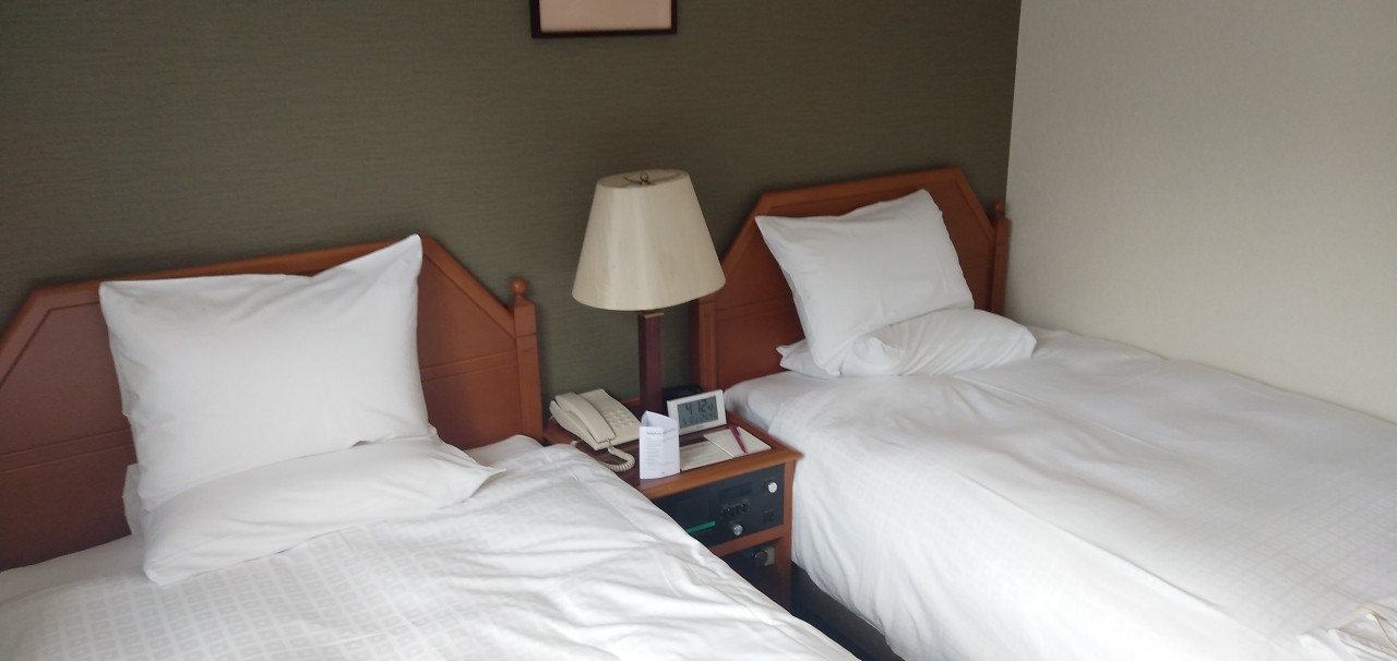 ツインルームのシングルユース。このホテルで宴会がありそのまま宿泊でした。