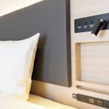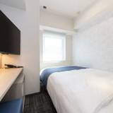 ベッドはセミダブルでしたが、部屋は11平米のコンパクトサイズ。スマホ充電器は部屋にはなく、フロントで無料貸出しをしています。1 / 3