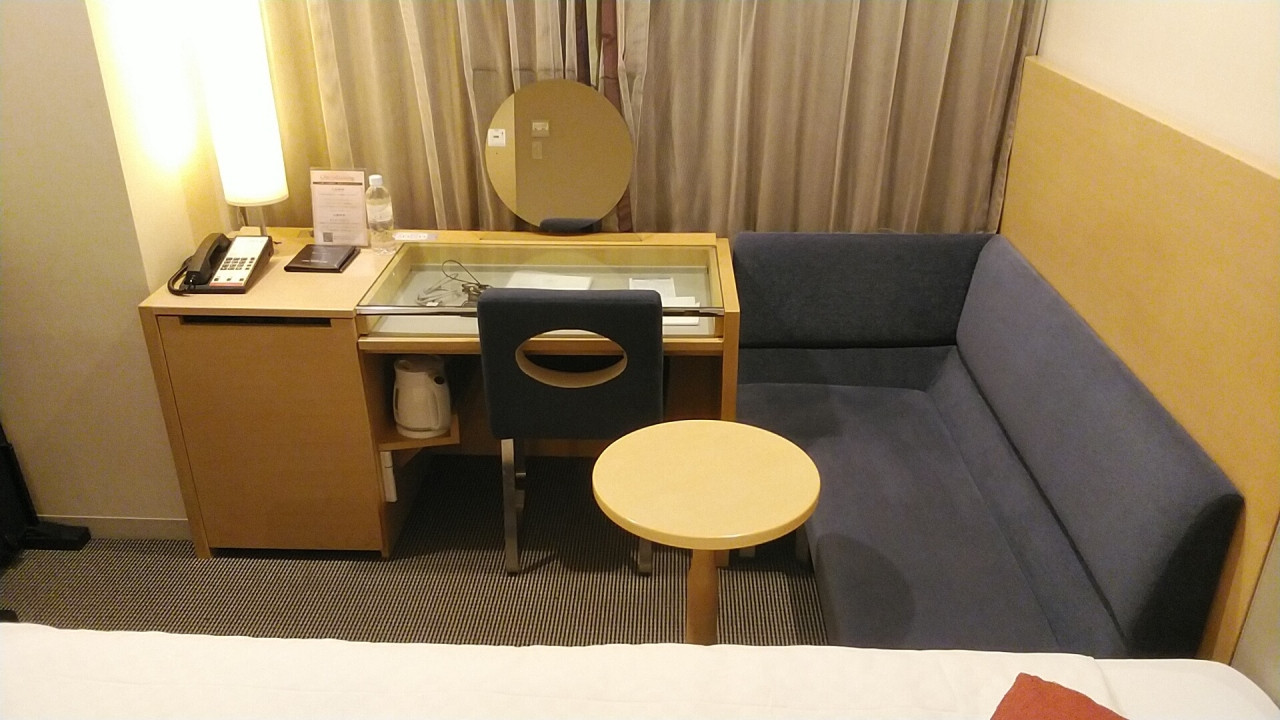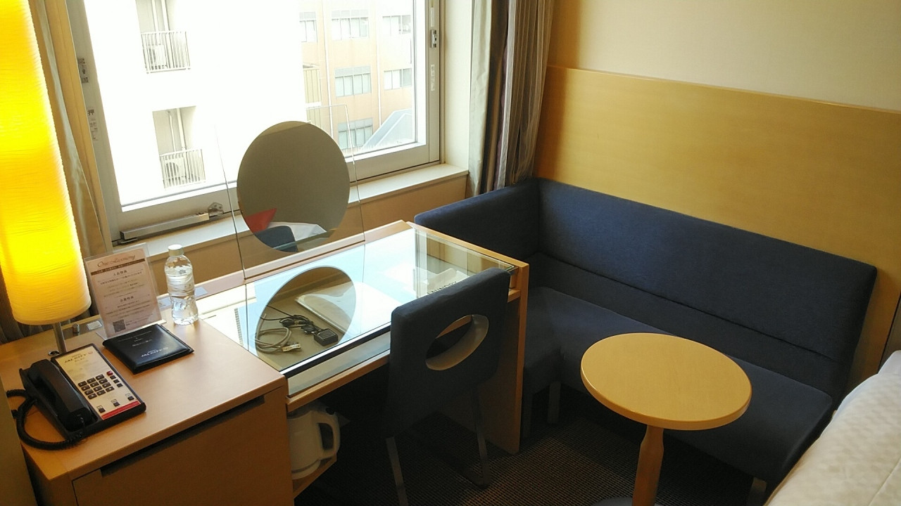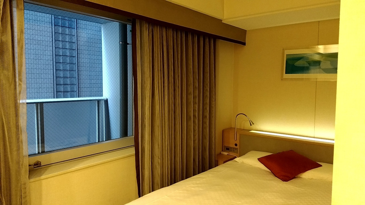 部屋は狭く、窓の外はすぐ隣の建物の壁で眺望はよくないけど、街ブラメインで寝るだけなら全く問題なし。