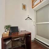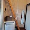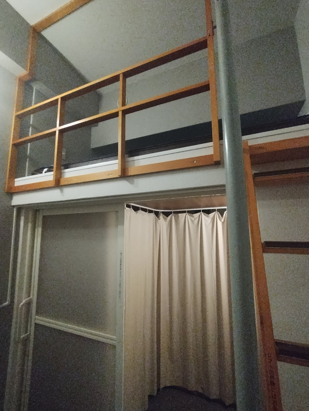部屋は天井の高さが4mもある開放的な空間で、簡易デスクと椅子、引き戸室には洗面台・シャワー・トイレが在りその上のロフト部分がセミダブルベッドに成り梯子が付いてます。