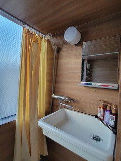 洗面台とシャワーカーテンあり