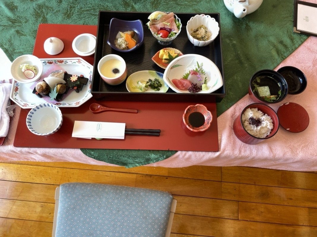 午後6時から大広間で夕食。ザ・日本の旅館的夕食。平均的な旅館のご飯かなという感じだけど、この値段だし、施設や温泉が素晴らしいので、トータルで考えるとリーズナブルかも。