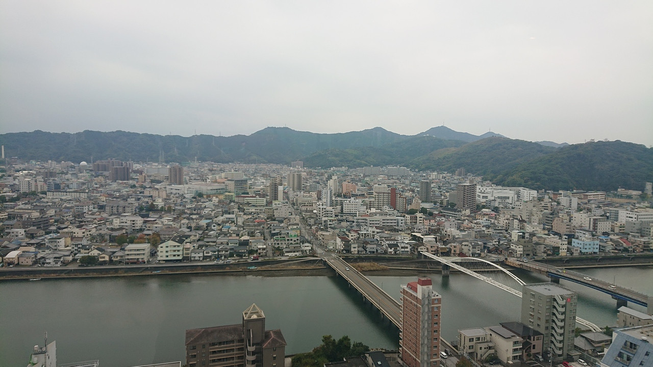 高知市の中心部からほんの少し外れていますが、路面電車の駅も近く、便利でした。市内でも有数の高層建築で、部屋や最上階のレストランからは山と川に挟まれた高知市街地の眺めが一望できました。少々古さは感じましたが、大理石を多用したロビーやゆったりした廊下など、歴史あるシティホテルとしての風格を感じました。また、接客もよく、安心して滞在できるホテルでした。