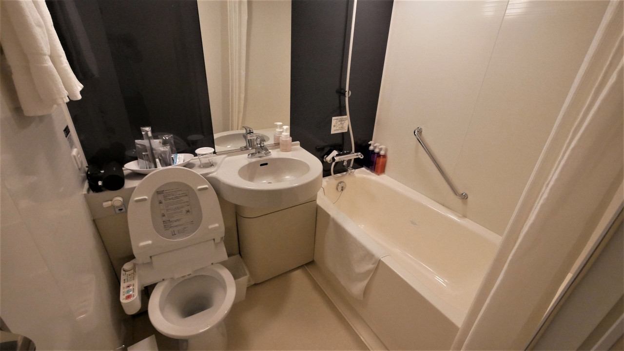 サニタリーは段差が無くて湯船が広めで、客室は窓際に広めのデスクと、ミニテーブル&1人掛けのソファーがあったので外食をやめて、夜は部屋でゆっくりしながらデパ地下で購入したものを食べましたが、西武秋田までも歩いて5分ほどですし、秋田県立美術館も6-7分で行けたので便利でした。