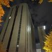 施設の正面 (日没後)