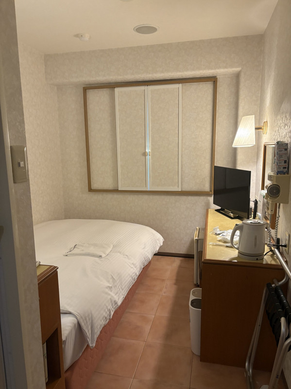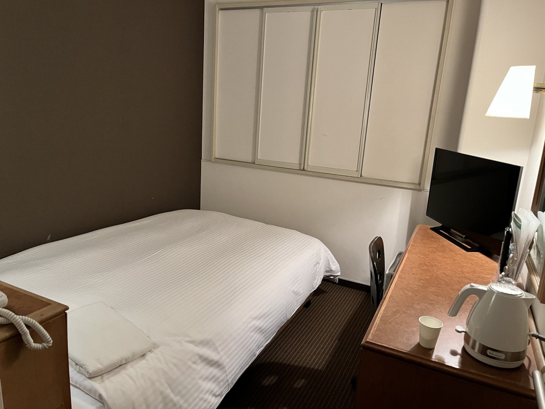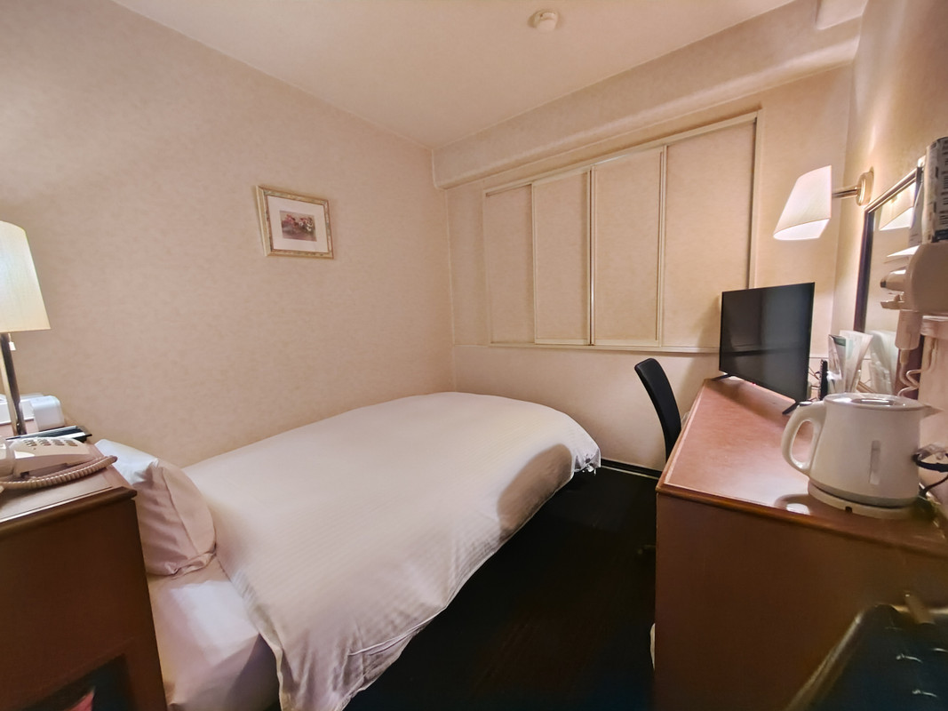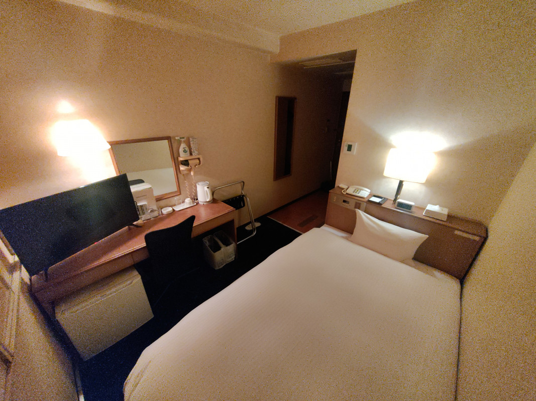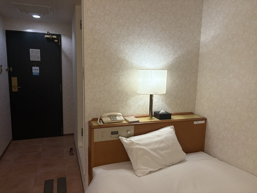 シングルに宿泊。サービスにまったく過不足の無い平均点のビジホシングルといった趣。ものすごく快適なわけではなかったが、居心地が悪いということもなかった。