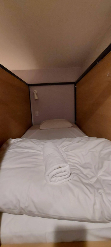 女性ドミトリー1泊しました 夜到着でも1階エントランス室内の様子がガラス越しで外から見えたので分かりやすかったです。2Fに清潔感あるキッチンがあり お湯を沸かしたり冷蔵庫も利用できました。机椅子が置いてあり朝の時間帯はパンや飲み物をいただく事ができ、夜はテイクアウトした食事をそこで食べたりして ドミトリー部屋以外のフリースペースとして利用しやすかったです。