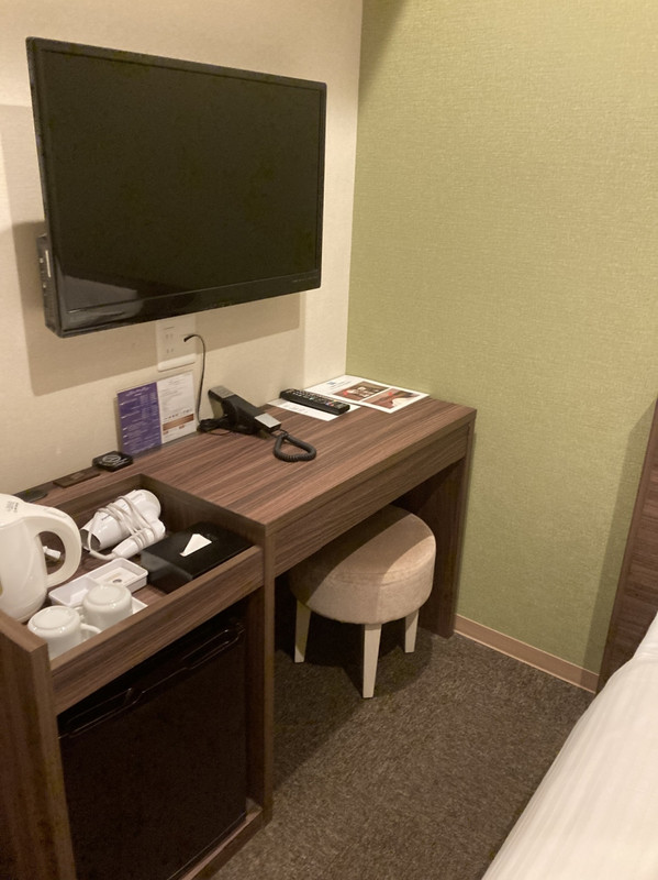 地下鉄中崎町駅が最寄りですが、梅田駅や大阪駅からも歩いて行けます。近くにローソンがあります。部屋は広くはないですが、機能的。ミネラルウォーターももらえました。ポットもあり、持参したドリップコーヒーを淹れました。