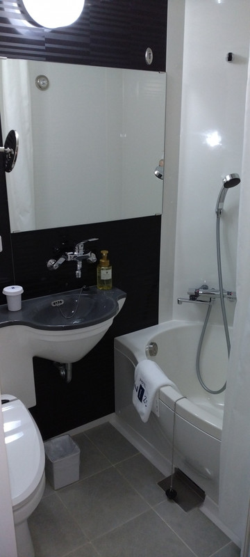 シングルルームを利用しました。お風呂はユニットバスです。ベッドが置かれると部屋のスペースがなくなります。快適では無いので、滞在時間が少ない方にお勧めです。一階にはやよい軒があり、近くにはコンビニがあります。阪急線が近いので電車の音が気になりました。