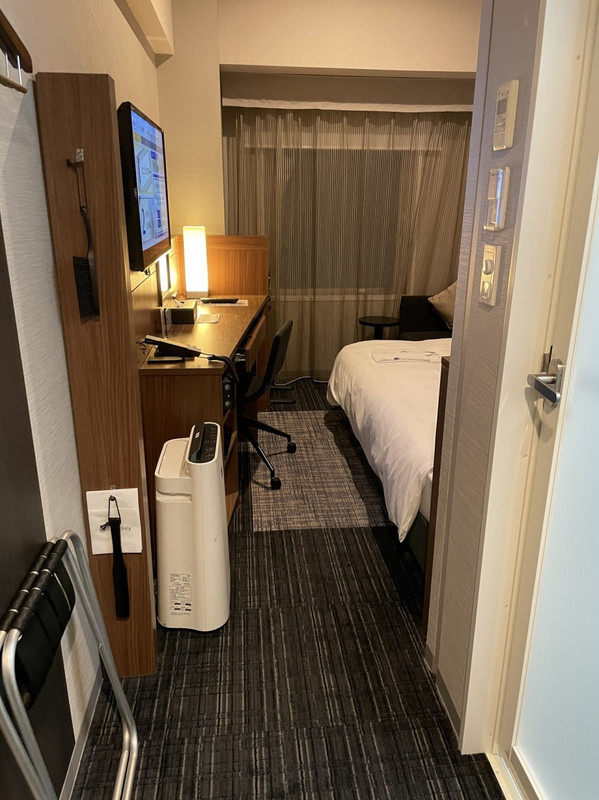 シングルに宿泊しました。部屋はコンパクトでよくあるビジネスホテルです。ただ、私の部屋がたまたまだと思うのですが、ユニットバスの排水溝の匂いが気になりました。。室内にズボンプレッサーと空気清浄機がありました。徒歩2分ほどのところにコンビニがあり便利でした。