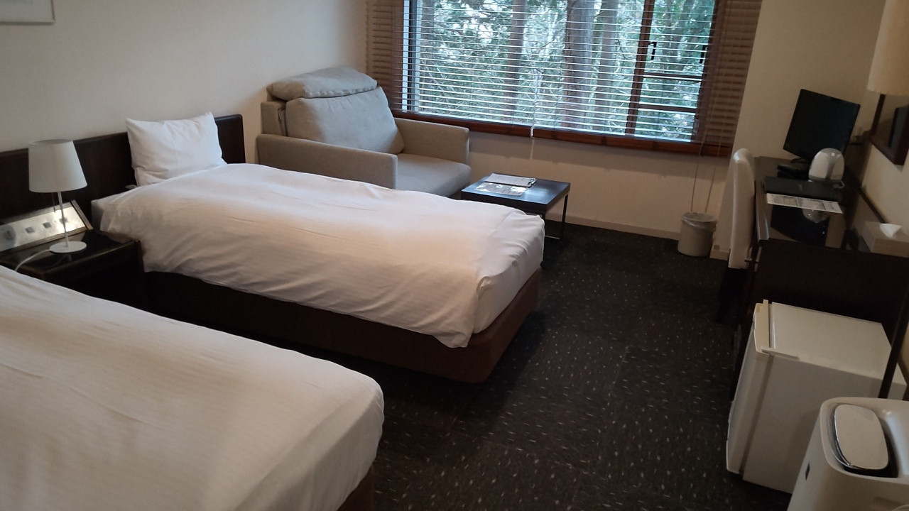 和室で布団を自分で敷くタイプが多い四季倶楽部ですが、ここは洋室が多く、ツインの部屋に泊まれました。