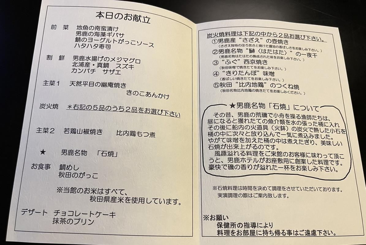宿泊先は こちらのホテル【 男鹿ホテル 】です。