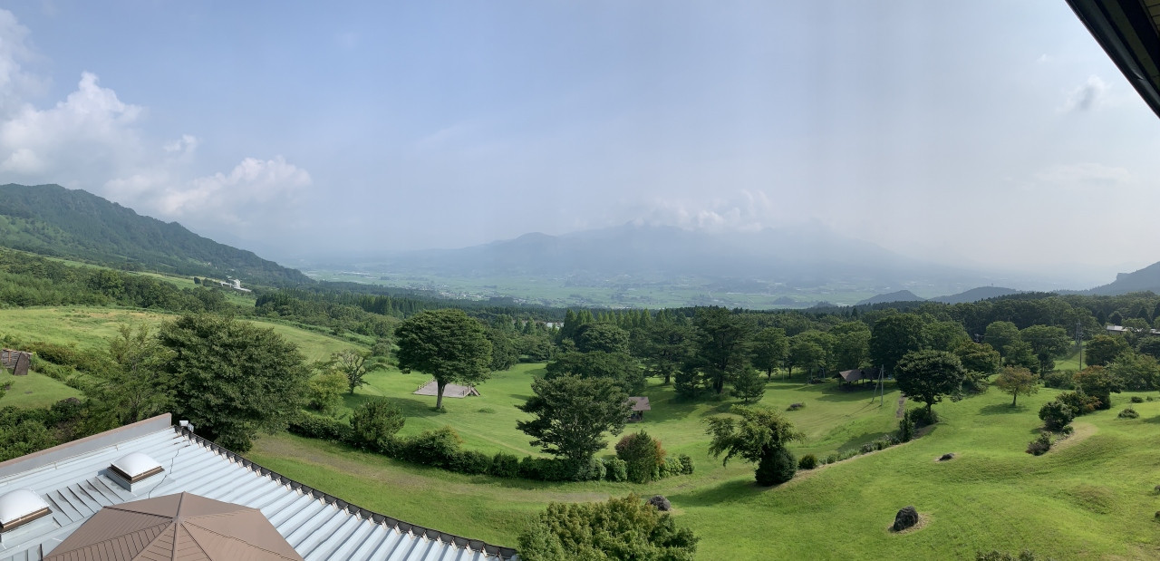 窓からは阿蘇山が一望でき、夕暮れ時、朝と色々な顔を見ながらの食事はプライスレス。