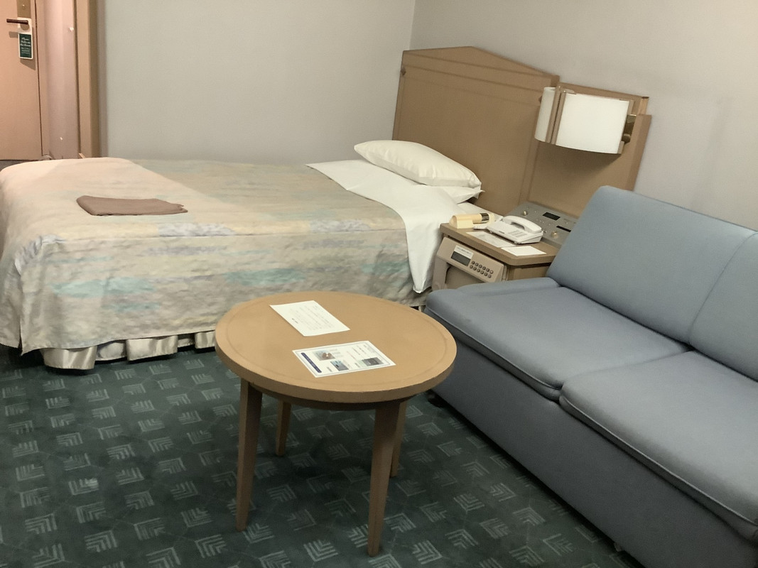 ゴールデンウィーク真っ最中、一人で泊まって一泊10000円ちょっと。部屋にはソファーもあり広さは充分。設備は古いですね。壁にはシミがあったりする。まぁそれは経過年数が経つとしょうがないことかな。