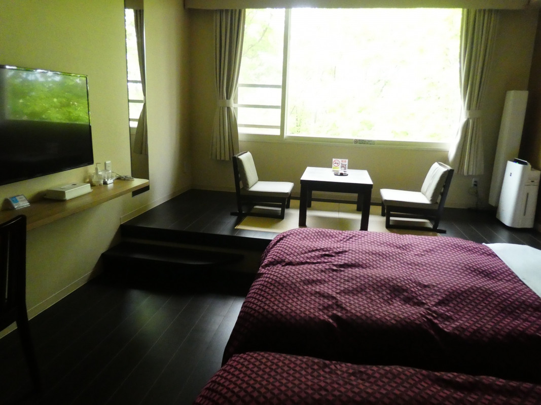館内は開放感があって、きれいです。ツイン部屋も畳の小上り付きでモダンな感じになっています。しかし、眺望は「森」。何カ月も前に予約してあるのに、眺めのいい部屋(例えば高層階)にしてもらえなかったのは不満。エレベーターも一度2階を経由しなければならないので移動に不便。さらにお風呂は、日帰り客であふれ、子供も騒いで、落ち着きません。山々をゆっくり眺めながら入浴したかったのに残念です。食事は洋風で洒落ていますが、ボリュームがもう一つ欲しいかな。クレームブリュレは「ブリュレ(焼く)」されておらず、ただのプリンでした。宿泊者にコーヒーの無料サービスがあるのはよかったです。