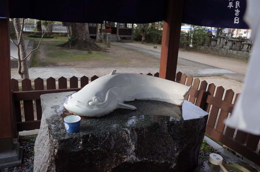 嬉野は土産物屋も無い町ですが、白ナマズ様を祭っている豊玉神社が目の前なので行ってみるとよいです。1 / 4