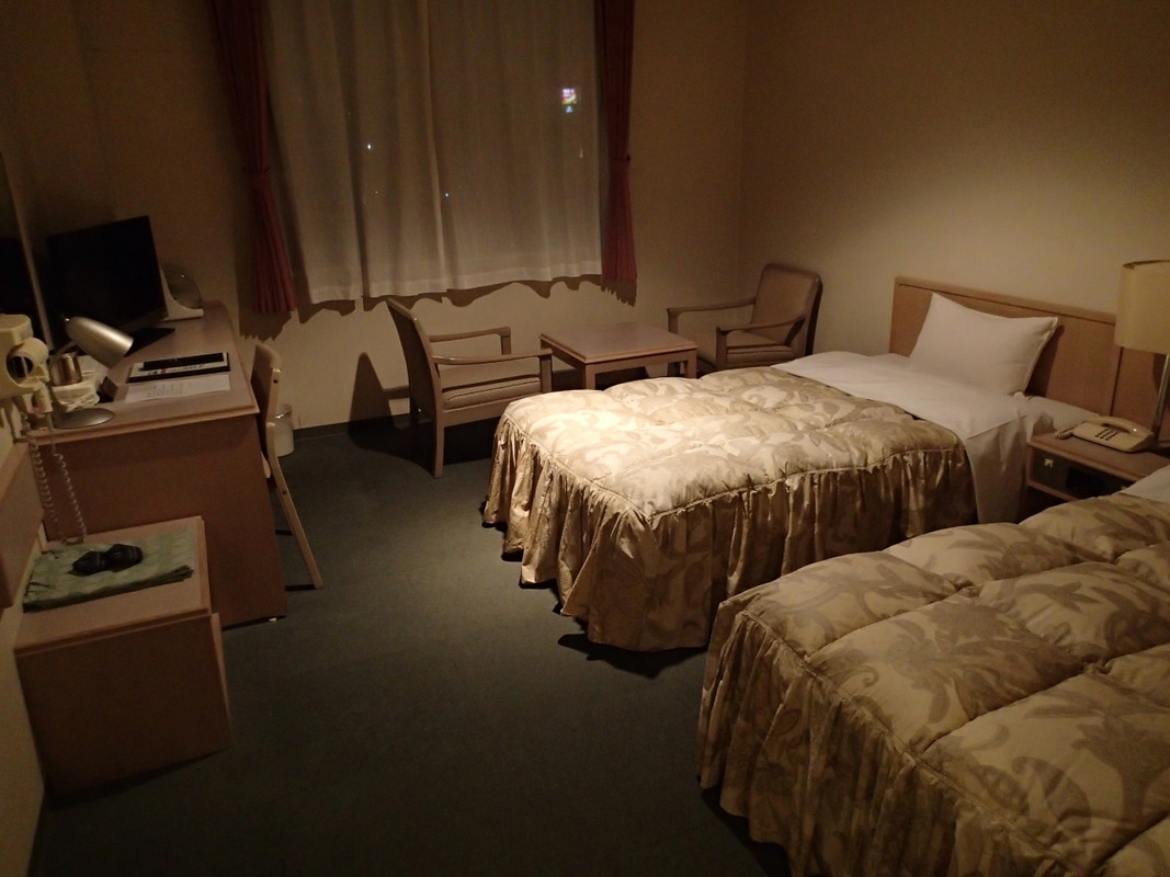 富良野市街地、ど真ん中にあるビジネスホテルです。高級ホテルや、ペンション的な宿泊施設しかない富良野では貴重な存在です。ツインルームの利用。比較的広いお部屋で、荷物を広げてもあまりストレスにはなりませんでした。