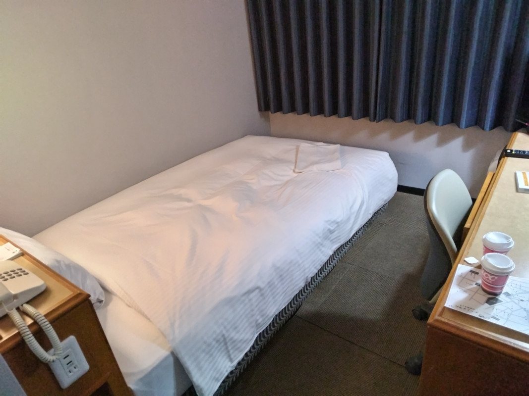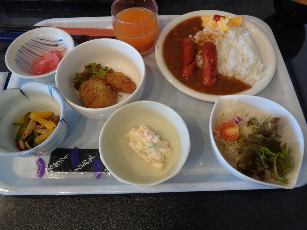 ホテルの場所は,久慈駅から真っ直ぐ数分の所にあるので,立地条件としては便利です.ただ,久慈市自体がホテルに余り選択肢がない街でした.部屋はシングル10平米くらいの部屋で,チョット狭いですが,一通りは揃っています.寝るだけと割り切るなら,それほど不便は感じないと思います.カミソリやヘアブラシのようなアメニティはフロントの横から持って行くスタイルでした.品質は普通でした.朝食は和食が中心ですが,朝カレーもあったので食べてみました.美味しかったです.朝食付きで6900円でした.
