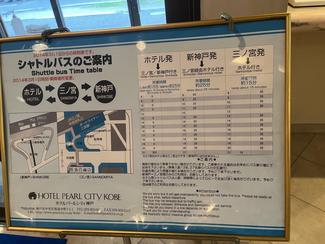 ホテルから三ノ宮まで 無料シャトルバスがあったので利用しました。