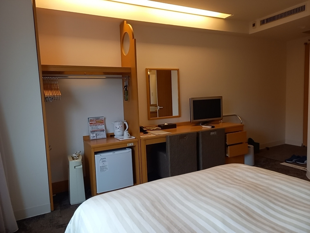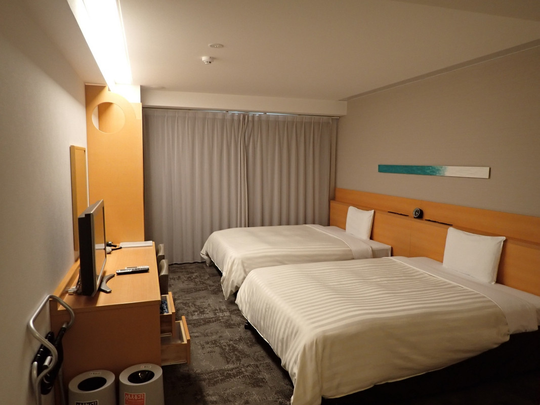 ANAのダイナミックパッケージで利用しました。部屋はツインにアップグレードしておきましたとのことでした。Wベッドが2台入った比較的広い部屋で、バスタブがあり、洗面が別に有ったのも便利でした。何より気に入ったのが朝食がメッチャ豪華でした。マグロ丼が有るのを知らず沢山乗り過ぎて、デザートは少ししか食べられませんでした。離島桟橋からも近く、利用価値の高いホテルだと思います。
