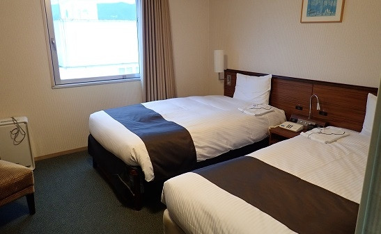 2人で泊まるのに楽天トラベルで安いプランがあったので選びました。19m2なのでツインとしてはちょっと狭いですが、朝食が美味しく、駅から近くて便利でした。また、レンタサイクルは電動でなければ無料で貸し出しがあるので、イオンモールに行くのに非常に便利です。