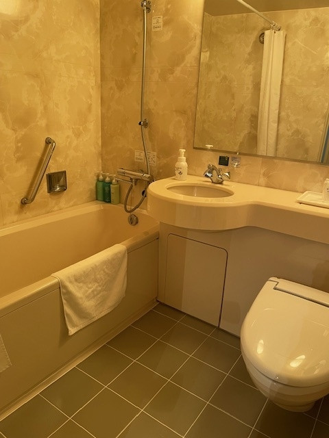 また、シングルのお部屋でもそれなりに広いので、ちゃんとスーツケースも広げられますし、余裕があります。お風呂も広いし、アメニティーに入浴剤(バブ)が付いているのも良いですね。ちなみに、ここのお水は、富山の美味しいお水だそうで、美味しかったですよ。