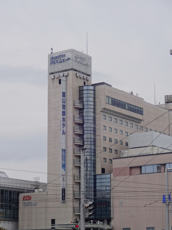 隣はJR富山駅。天気がよければ立山や剱岳が見えるのかも。
