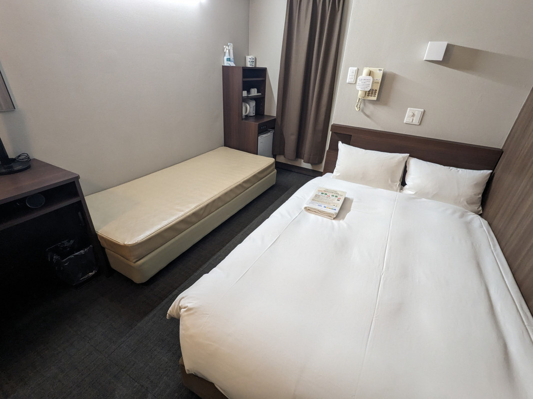 部屋も広めで補助ベッドみたいなものもあります。ユニットバスは狭いですが