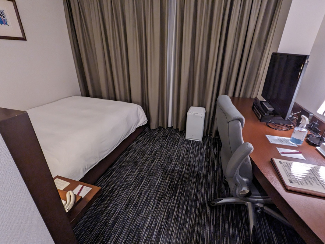 米子駅から歩くと10分弱かかりますが、米子城の緑地に近い、のびのびしたところにあります。キャンペーンでお値打ちな価格で出ていたので泊まってみました。