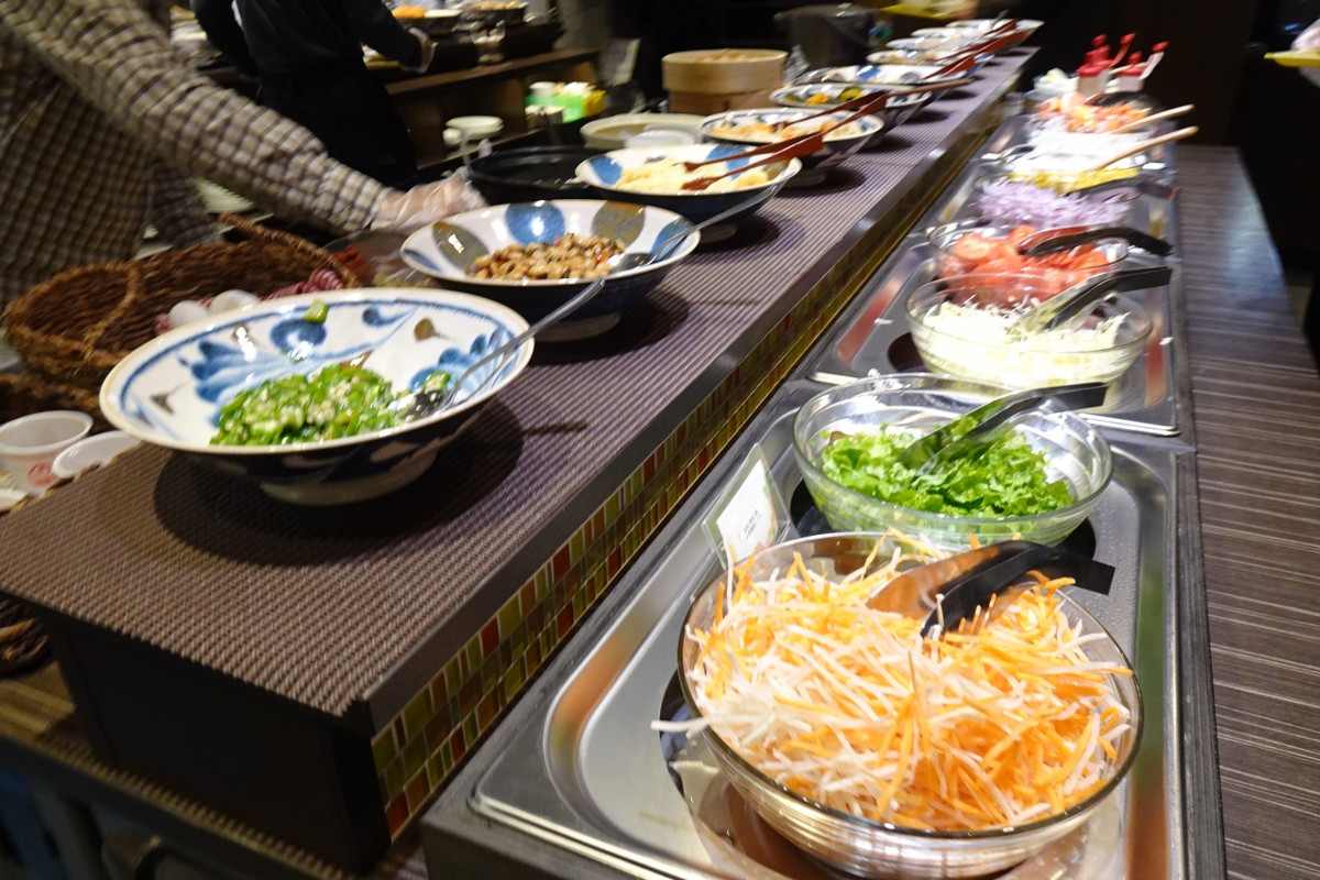 朝食も種類豊富で、地元の食材が使われていて満足です。珍しいことに、お好み焼きがありました。
