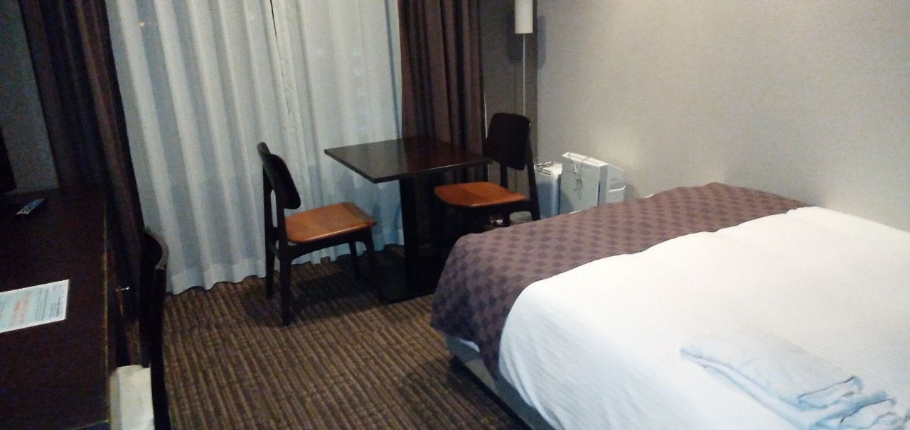 最近は広めのツインルームに案内されることが多かったのですが、久し振りにダブルルームでした、とは言えやはり佐世保の他のホテルに比べると部屋が広いのが良いです。駐車場は5分も歩けば18時~8時で300円であります。シャワーの水圧がもう少し強ければ言うことないです。