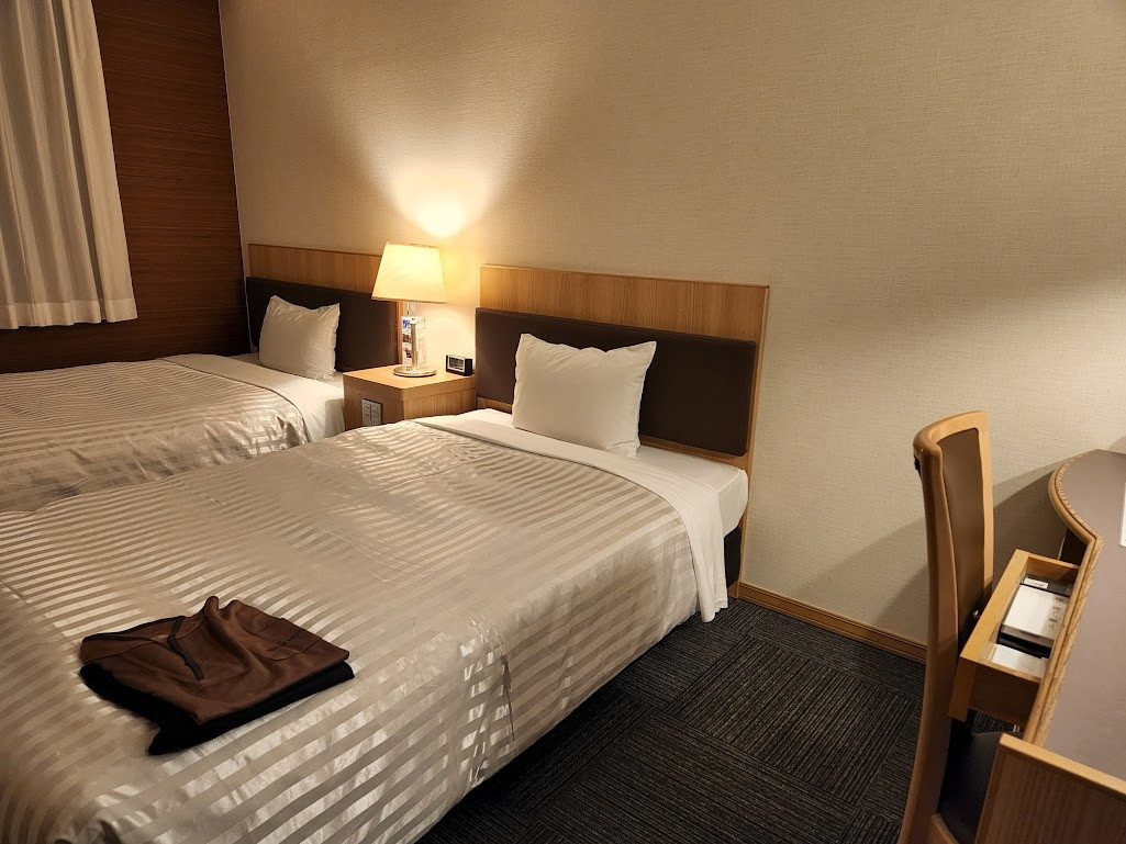 ホテル自体は客室も清潔、フロントの対応も悪くないし、何より新館の大浴場は広々して快適です。スマホ用の充電ケーブルもあり、細かい配慮が行き届いています。ただ、アサインされた本館の部屋はバスルームの敷居が高く、夜中に利用するときには躓きそうで老人にはやや危険かなと思いました。