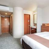 ツインの部屋にセミダブルとシングルの大きさの異なるベッドが2つ置かれていました。洗面台はバスルームの外なので使いやすかったです。朝食では郷土料理が多種類食べられて良かったです。1 / 2