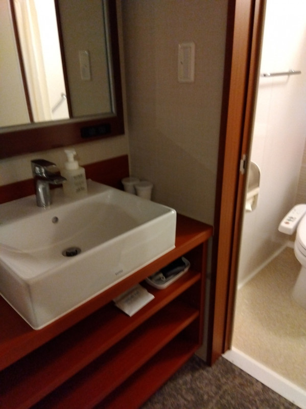 10階建てのホテルで9階の部屋に宿泊。ダブルベッドとエクストラ風のシングルベッド(やや幅狭)、バスタブは足部分狭く背中側緩やかにカーブした形。トイレと一緒だが、洗面台とは別になっているのがいい。珍しいことに、クローゼットは窓側に、中央は丸くカーブした柱のようになっている。設備は比較的新しくモダン、エアコンは独立しているので操作が楽でした。コインランドリーや電子レンジ、無料のアイスサーバーもある。朝食はブッフェ式でメニューの種類はごく普通。料理はおいしかったです。