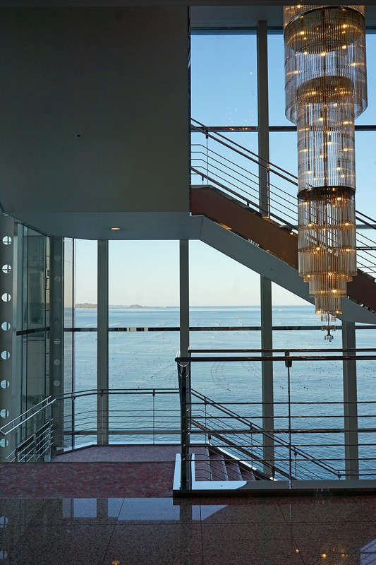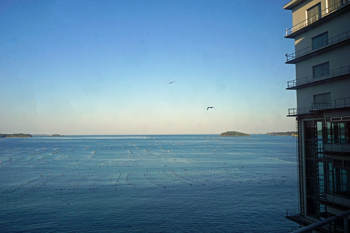 ホテルのどこにいても志津川湾の景色が美しく眺められるホテル。大浴場も素晴らしい。