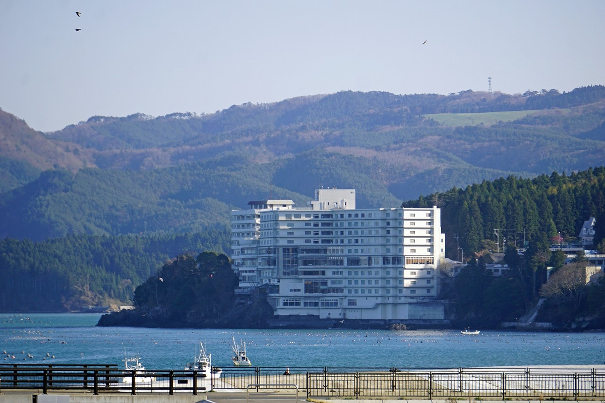 仙台からの送迎バスのある、気仙沼の少し手前の大きなホテルです。海もよく見え、お食事もおいしかったです。何よりも東北震災の際にとても力を発揮されたことを知り感動しました。また今でも語り部バスを毎日運行していて、それにより短い時間でしたが震災の遺構などを見せていただき深く思いをいたしました。また機会がありましたら行きたいホテルです。