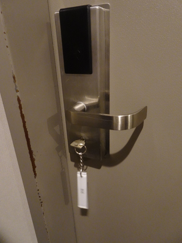 部屋のカギは、カードキーのドアなのに、アナログで開け閉めする不思議なドアキーでした。