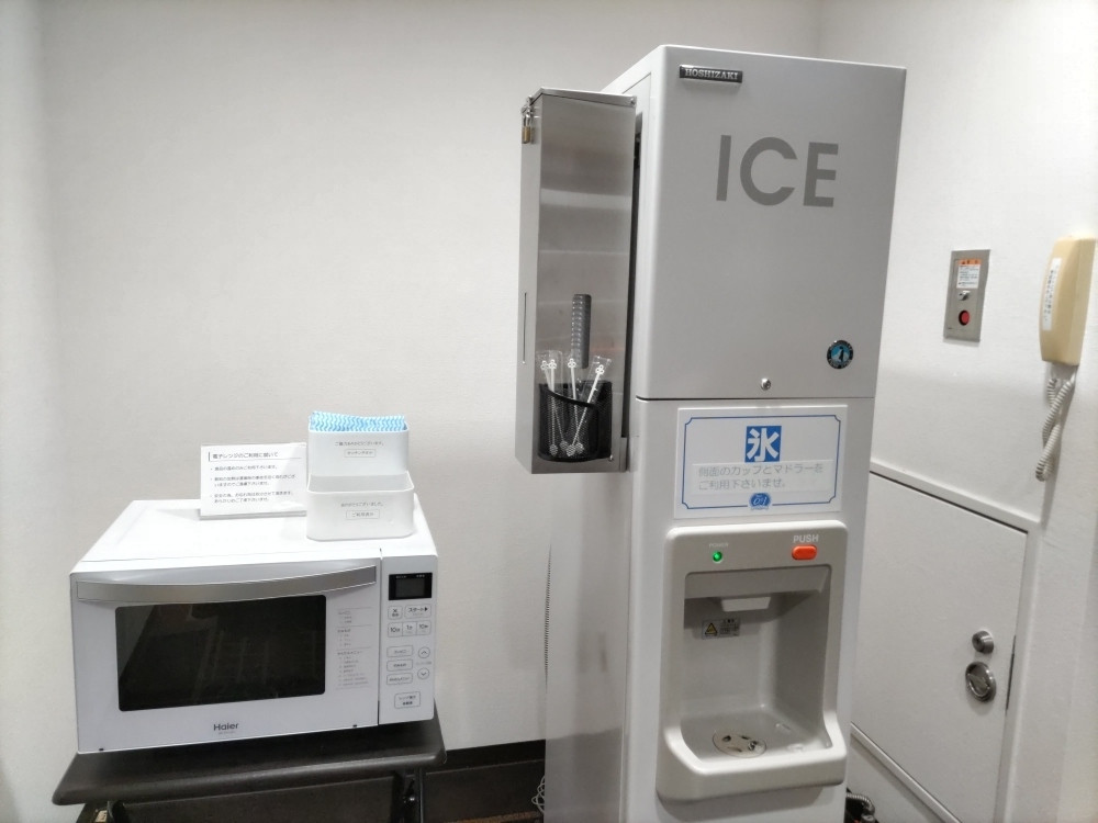 最上階のレディースフロアエリアは女性のみの利用ですが、男子のお客様(小学6年生以下)はご同行になれますと表示されていました。エレベーターホールに電子レンジと製氷器があり便利。