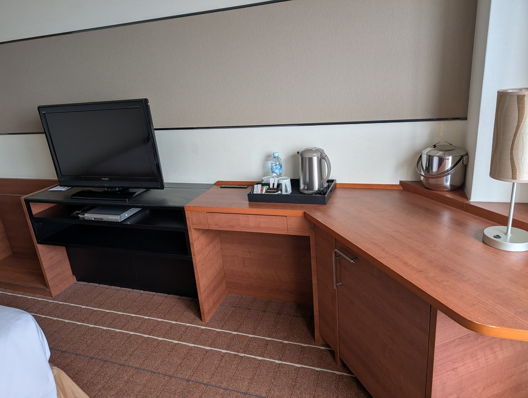 建物は元ラディソンホテルで、昨今のビジネスホテルより広めですが、コンセントやバスタブなどは少し古め。そこをカバーすのが無料で利用できる湯楽城です!お風呂も広く、岩盤浴もあり、楽しめます。ジムや小規模セブンイレブンもあり、施設内だけでも時間はつぶせます。