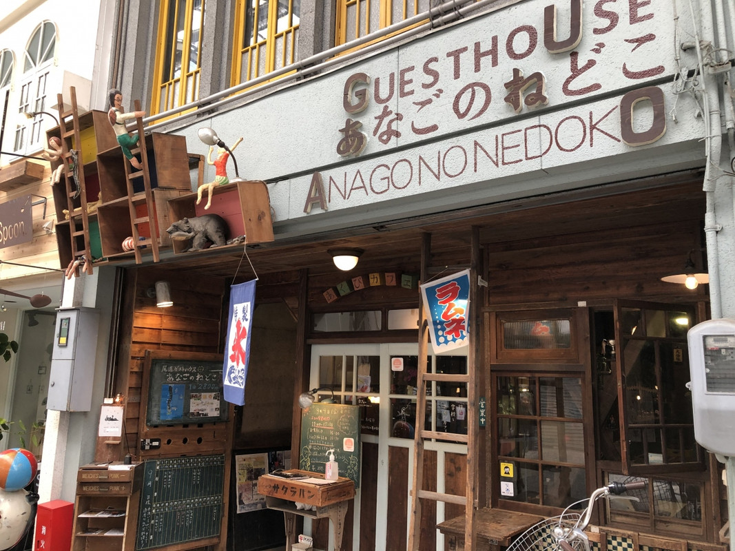 尾道の商店街の中の空き家を再生したゲストハウスということで知られています。尾道駅から歩いて10分から15分くらい、商店街の中にありました。1階があくびカフェという名前のカフェになっていて、若い方々に大変人気があるようです。