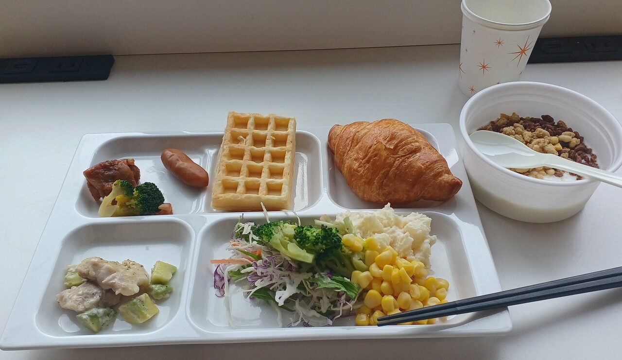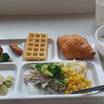 朝食もついていて、パンの洋食、ごはんの和食ともにありました。おかずの品数は多くはないものの、どの料理もおいしかったです。ワッフルやフルーツもあったりと充実していました。